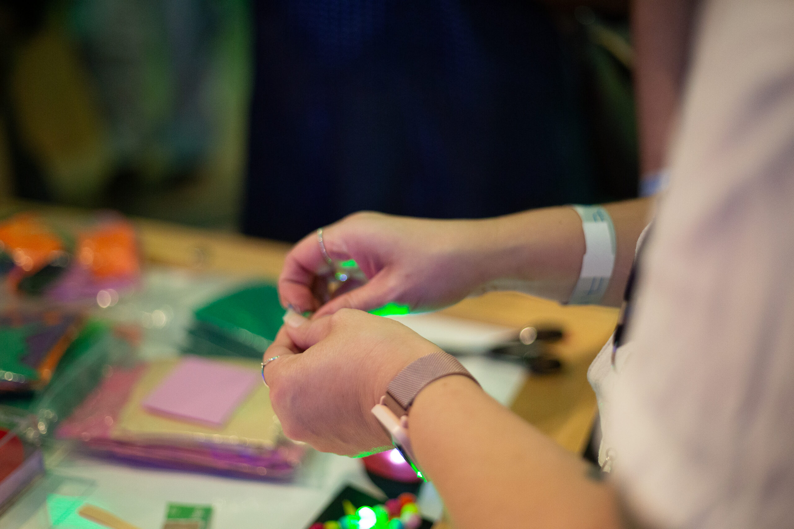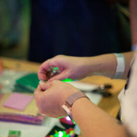 Na ativação "Broche de Luz", os participantes são convidados a criar um acessório único – um broche luminoso – enquanto aprendem sobre eletricidade de forma lúdica. Mais do que um objeto de personalização, esta atividade propõe uma experiência prática sobre circuitos elétricos simples, usando LED e bateria, para ilustrar como a energia elétrica pode ser acessível, criativa e sustentável.