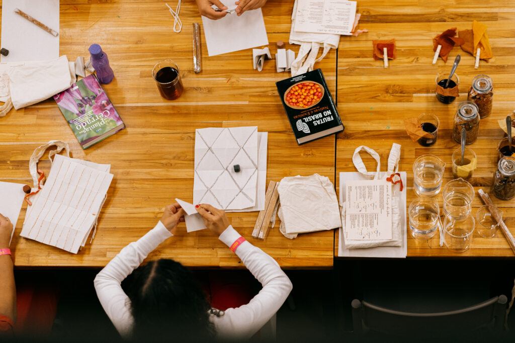 Gerar conhecimento aos participantes sobre o impacto dos corantes sintéticos no meio ambiente e apresentar técnicas alternativas sustentáveis de tingimento e corantes naturais juntamente com técnicas de shibori tradicional inspirado no briefing sobre tema “fractais”.